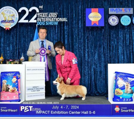 Wealthy przyjechała do nas z dalekiego Bangkoku. To pierwsza Tajka welsh corgi pembroke, która zamieszkała w Polsce. Bardzo dziękujemy Aey i Ari za mnóstwo poświęconego czasu, cierpliwość i wielkie serce.