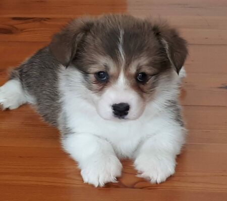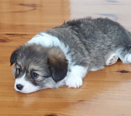 491 Corgon Blue Draczna Psotka, ogon cięty: NIE, rude z białym, 13-09-2018, tat./chip 616093900443060, PKR