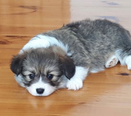 468 AURORA Corgi Meadows FCI, (Mł.Ch.BG), pręgowane, 29-11-2016, tat./chip 616093900289088, PKR.I83538, 19900/XXI/16, (Fest LEON – LA LUNIA Controversia FCI), hod. Marta Sajewicz, wł. Marta Sajewicz, Polska